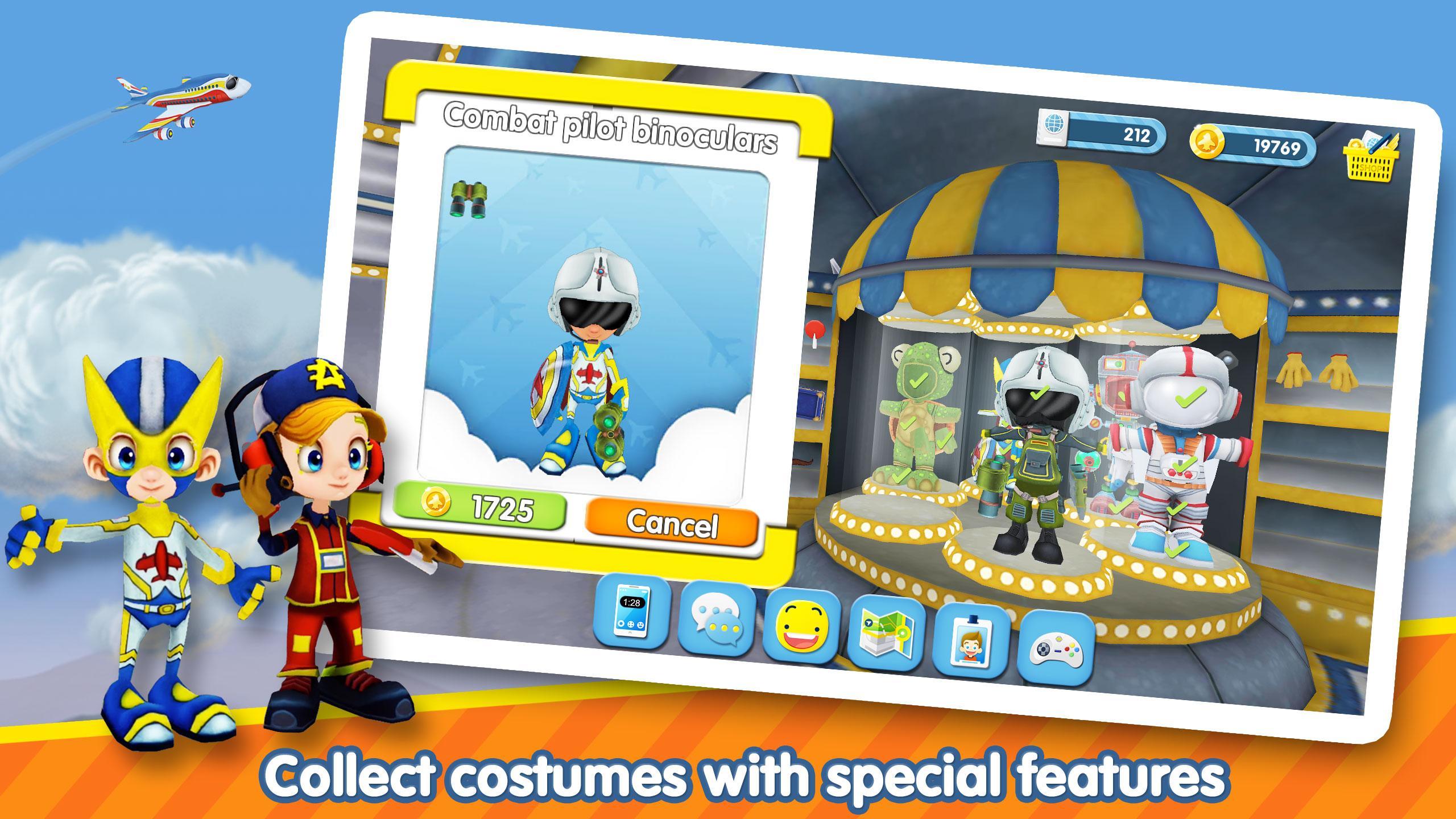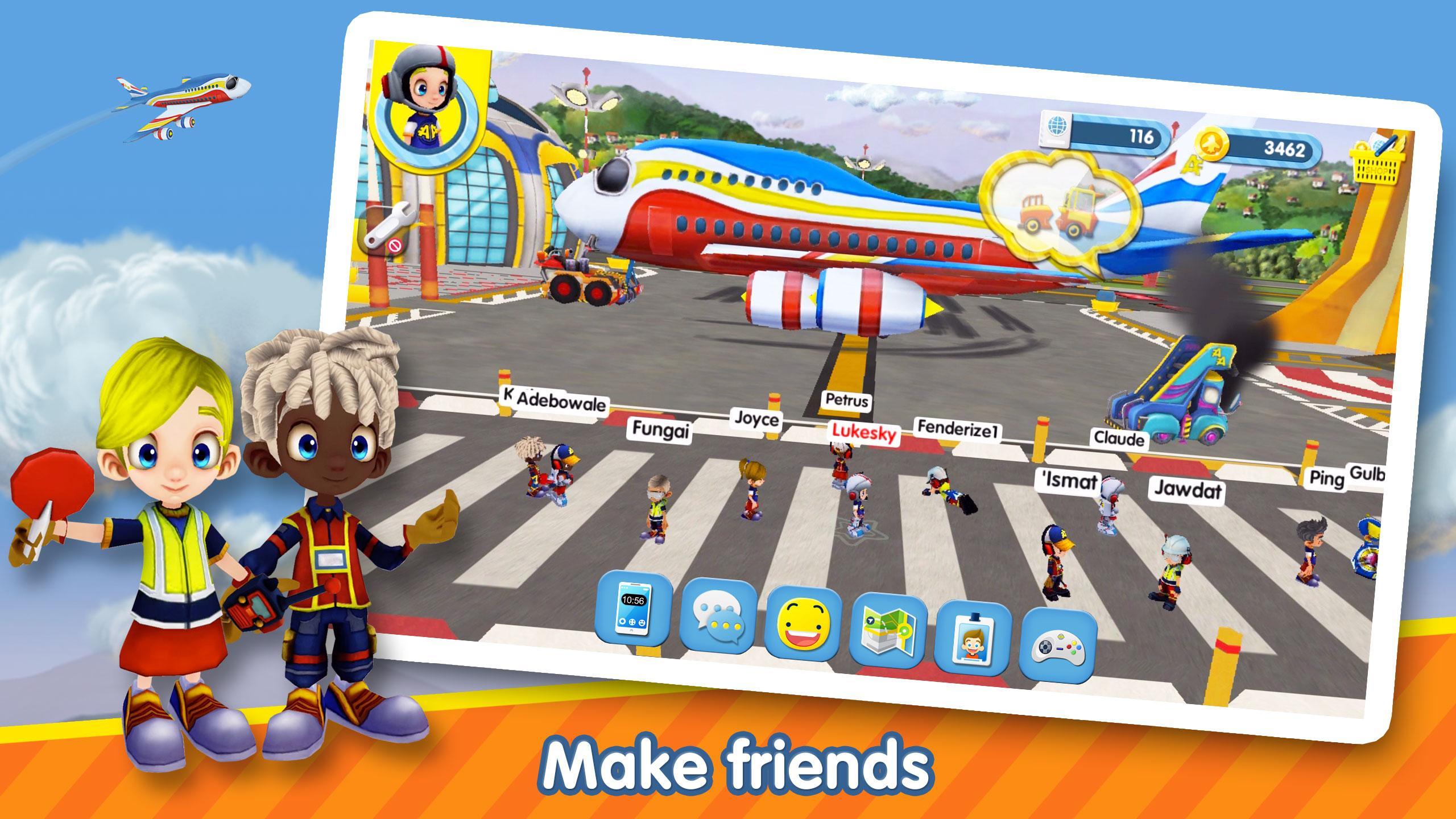 Explore the airport & play games plus chat & earn virtual coins with friends