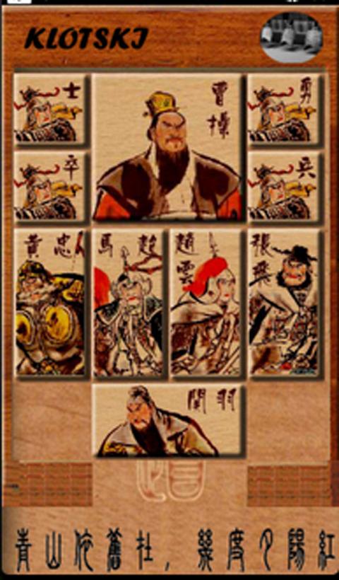 Aklotski game taken from the famous story of the Three KingdomsCao Cao in Chibi war Liu Bei and Sun Quan's "desperate measure", "cable even boat" defeated and forced to retreat to flee Aklotski, faced with Zhuge Liang's ambush, Cao Cao, Guan Yu to repay for his kindness, make clear the real force, and finally help Cao Cao escape the Aklotski. The game is in accordance with the "Cao hiding away defeat Aklotski, Guan is working with the narrow road is closed. Only the original weight of gratitude, let go go golden dragon" of the story.