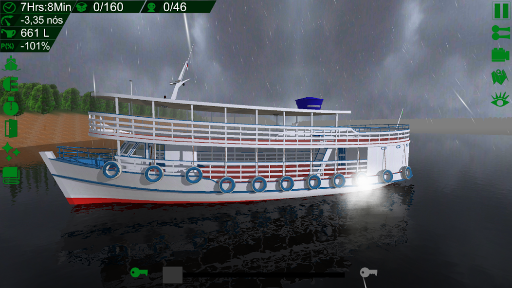 Amazon Hydro Transport is a boat simulation game in the Amazon region. The objective of the game is to transport passengers and cargo along the Amazon rivers, taking them to different points in the region. It has several types of boats, where you can customize, modify the propulsion, choose the route, choose the time and much more! In this Amazon boat simulator, you can customize and choose the engine and other items for your boat. Each vessel supports a maximum number of engines and a maximum number of passengers. The trips are made via lines, where there are climbs in various cities, towns and locations in the Amazon region. At the ports there will be cargo and passengers for the player to transport to a certain destination. Each trip is paid depending on the distance.
