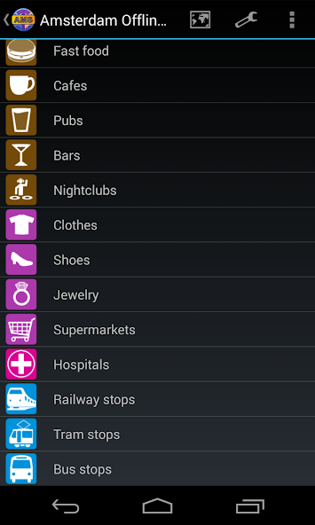 With this app you have the map of Amsterdam right in your pocket! It offers an interactive map that lets you browse the city at amazing detail. Additionally, it comes with a search index for locating streets, but also other places of interest such as museums, restaurants, cafés, hotels, sights and many more. After installing the app, no internet access is required anymore, neither for browsing the map nor for using the search functionality. As a result, the map loads reliably fast and it helps you reducing your data usage to stay within the limits of your data plan. Even if you're a tourist and do not have any mobile data plan at all, the map works equally well, independent of WIFI connectivity.