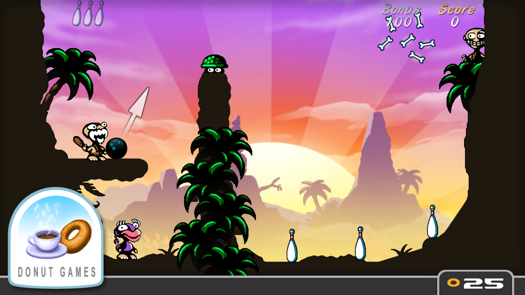 ما عليك سوى تعيين الهدف بإصبعك ، ثم أرسل كرة البولينج التي تحلق عبر المناظر الطبيعية الصخرية المليئة بالعقبات المجنونة والحيوانات التي قبل التاريخ.