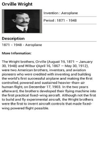General Inventions هو تطبيق Android مجاني ومفيد يسرد معلومات حول General Inventions في الماضي. سيكون هذا التطبيق أداة مفيدة للأطفال لمعرفة العديد من العلماء العالميين. لا يوجد اتصال بالإنترنت مطلوب لعرض تفاصيل الاختراع.