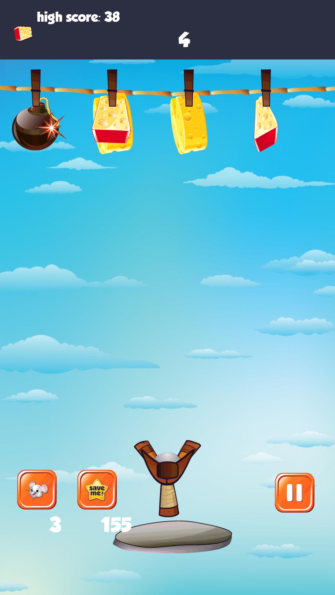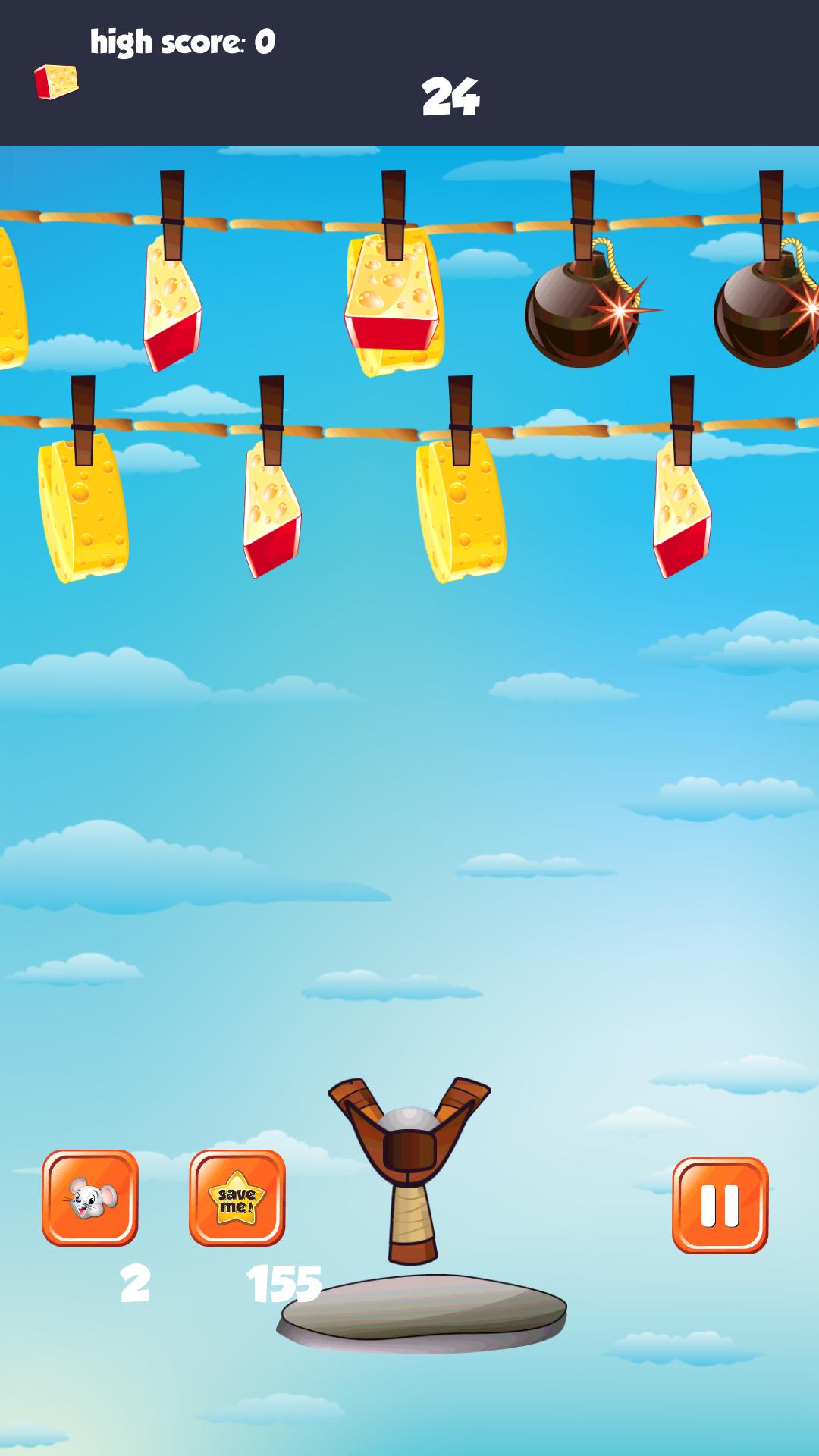 هذا الماوس رائعتين والبريقون مسلحون مع مقلاعه الموثوق به يطرق أكبر قدر ممكن من الجبن أثناء محاولته تجنب انفجار القنابل. انتهت اللعبة…. إذا ضربت الكثير من القنابل ، وتبدأ المغامرة مرة أخرى.