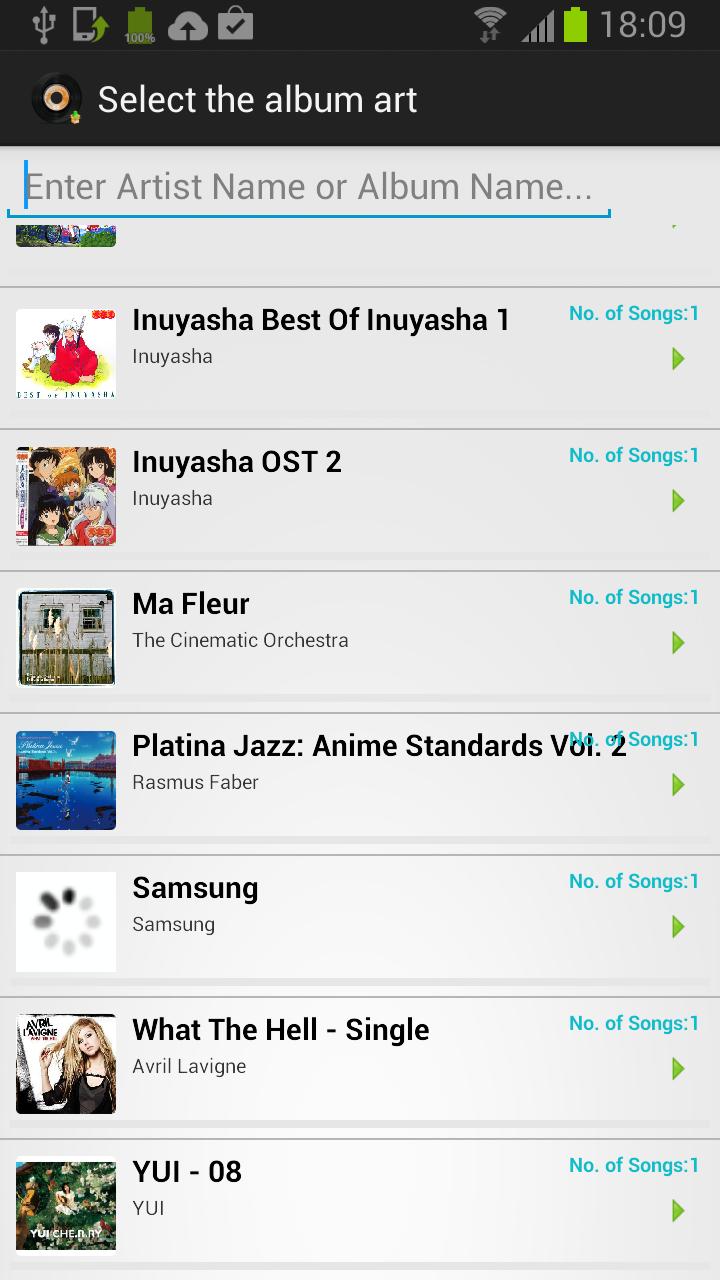 ملاحظة: إذا كان التطبيق غير قادر على استرداد الصورة ، فقم بتشغيل مشغل الموسيقى المسبق لمسح الوسائط أولاً ،
