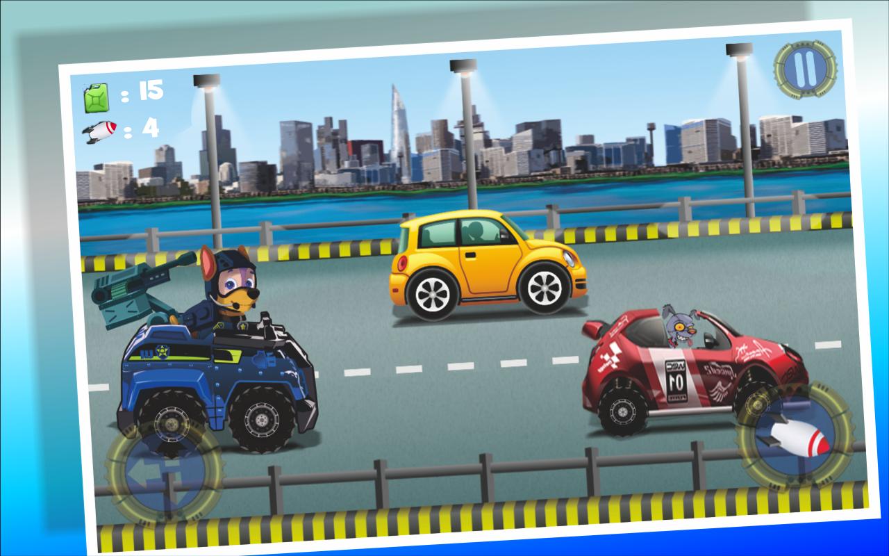 في لعبة Paw Road Battle Patrol ، يجب عليك جمع الصاروخ وتدمير سيارات الأعداء.