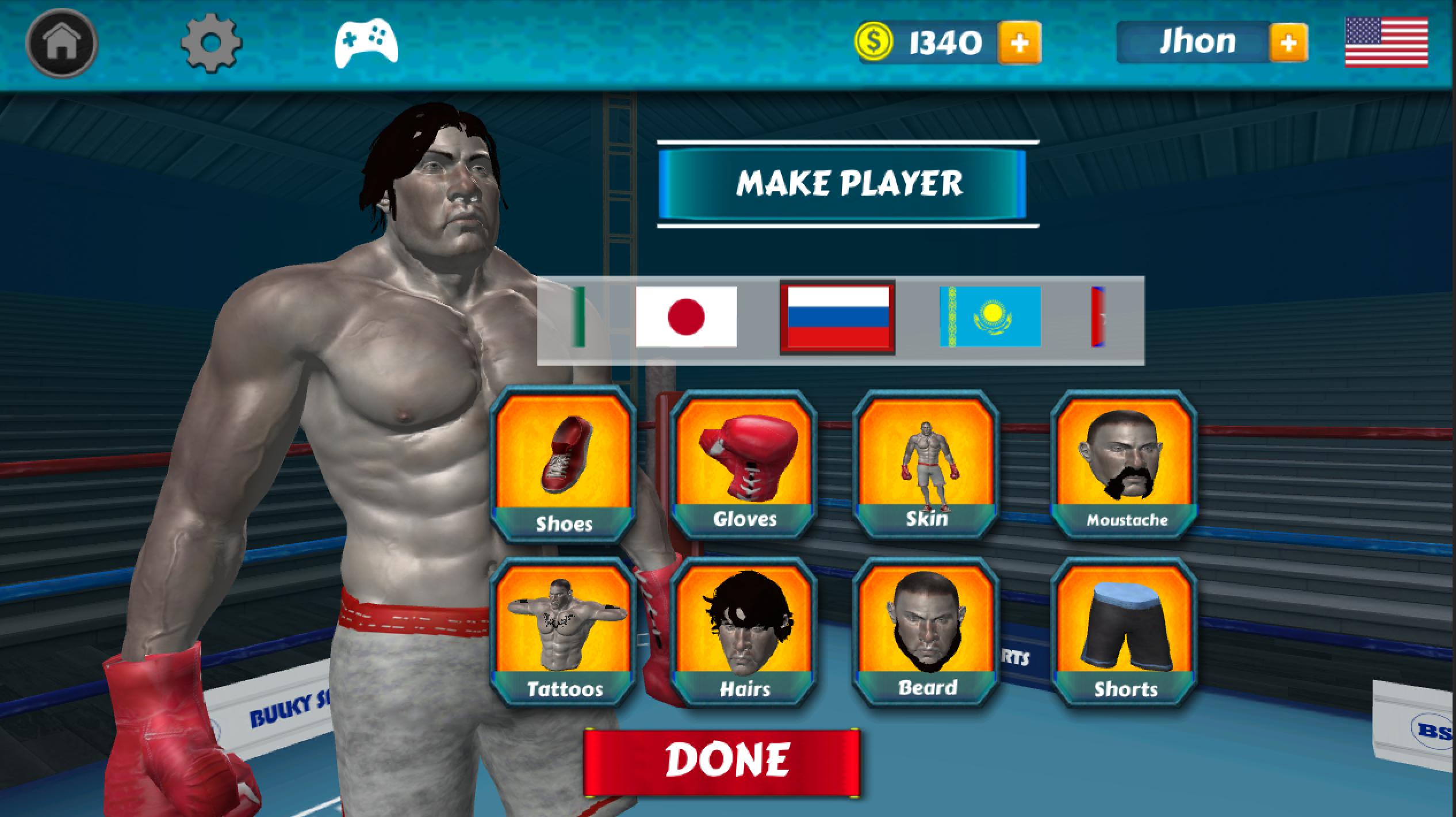 • إنشاء وتخصيص بطل الملاكمة الخاص بك