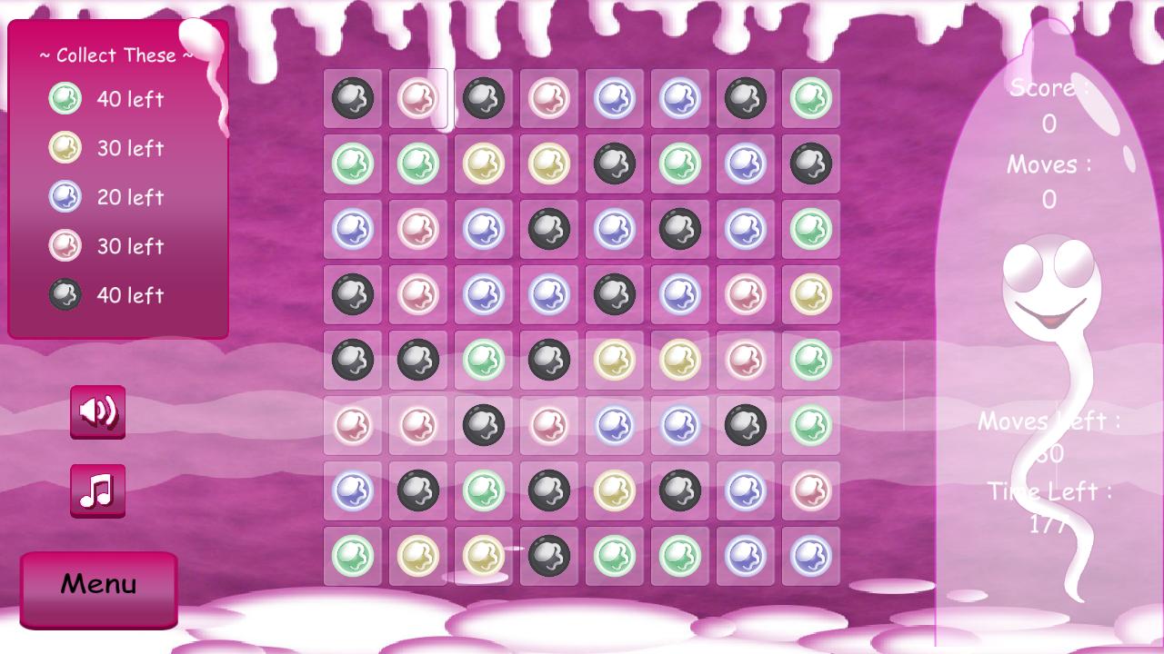 Sperm Match مجنونة ومضحكة مطابقة لك! كلاسيكي مع موضوع الحيوانات المنوية.