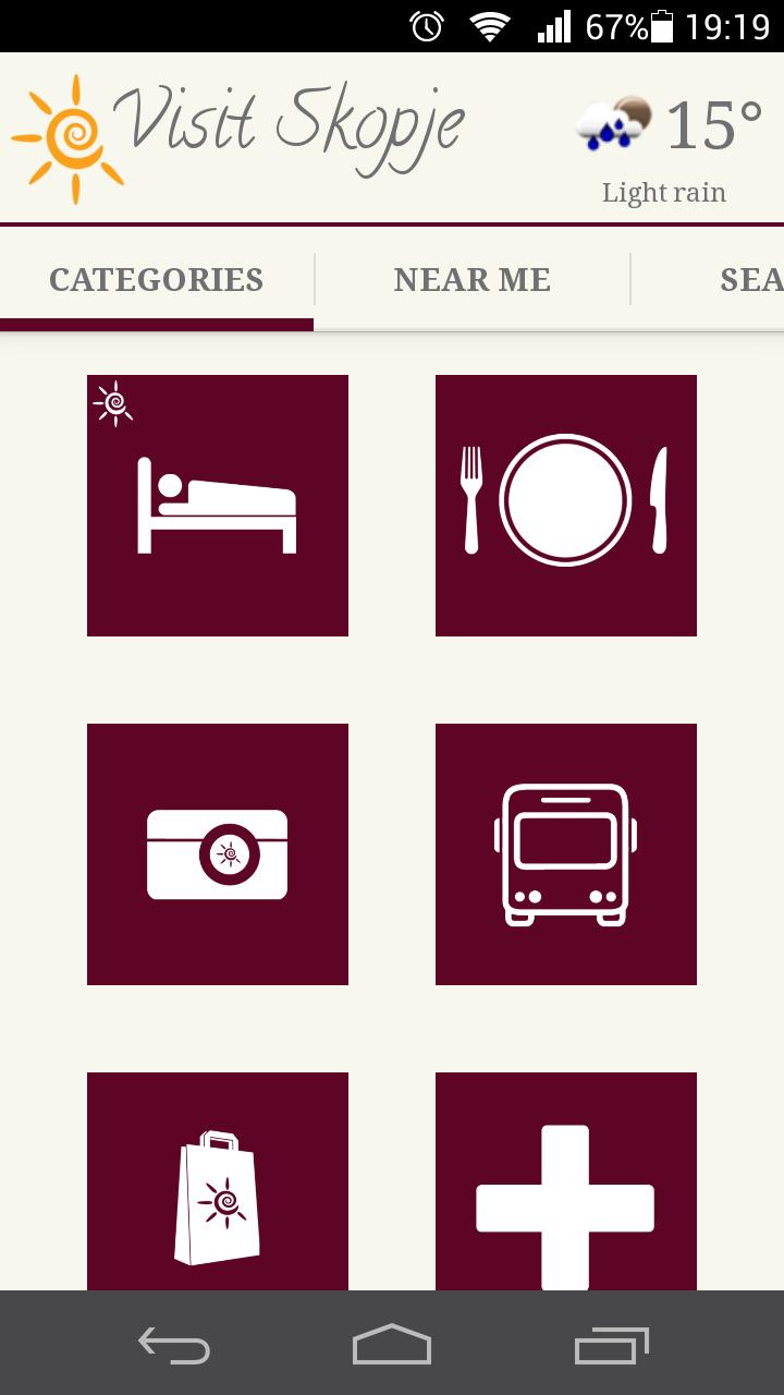 تطبيق مفيد لجميع زوار Skopje. ابحث عن فندق أو نزل ، أو مطعم ، أو مكان للتسوق أو العثور على معلومات حول التراث التاريخي ، والآثار ، وجمال الطبيعة ...