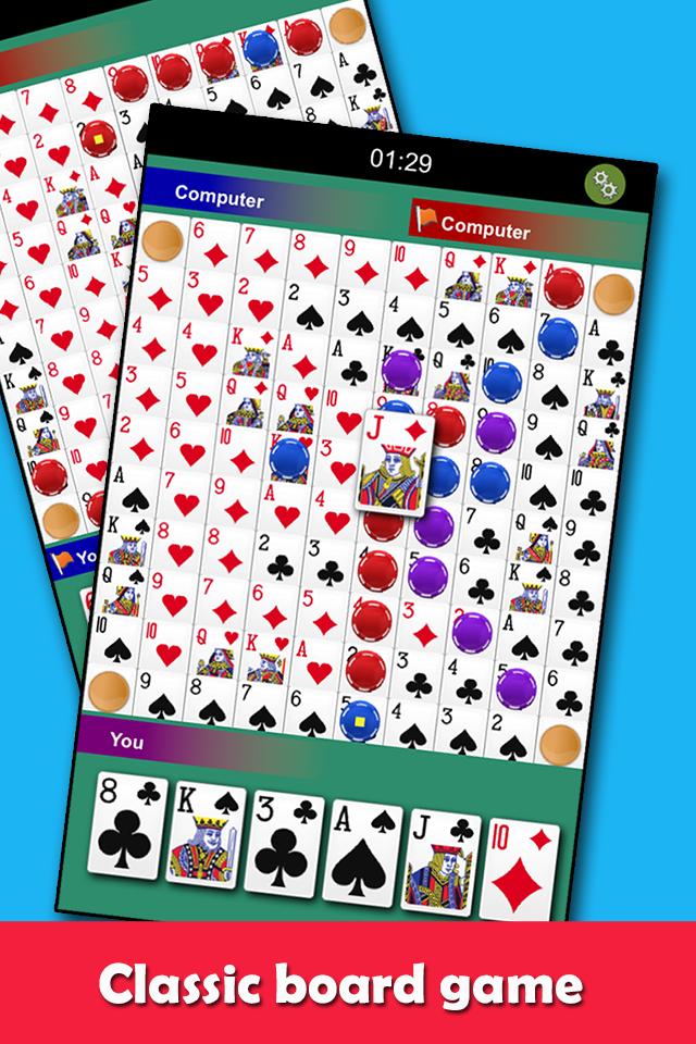 المعروف للآخرين باسم "التسلسل" ، "واحد العين جاك" ، "جاك كذبة" ، "الرافعات البرية" أو "جاكاة مجنون". حاول صنع تسلسل من خمسة مع بطاقاتك.