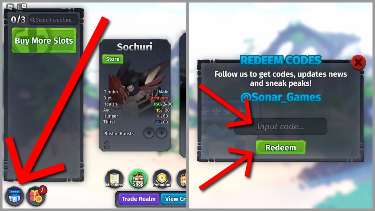The process of redeeming Creatures of Sonaria codes is easy, and it can help you a great deal in this challenging game. Follow these instructions: