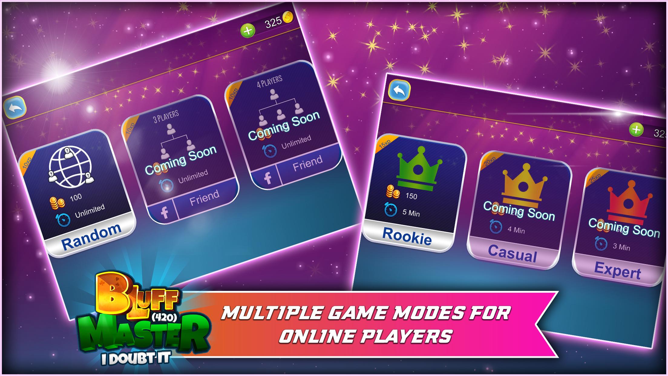 Multiplayer - Play with Bluff Masters from around the world or with your FB friends!!!