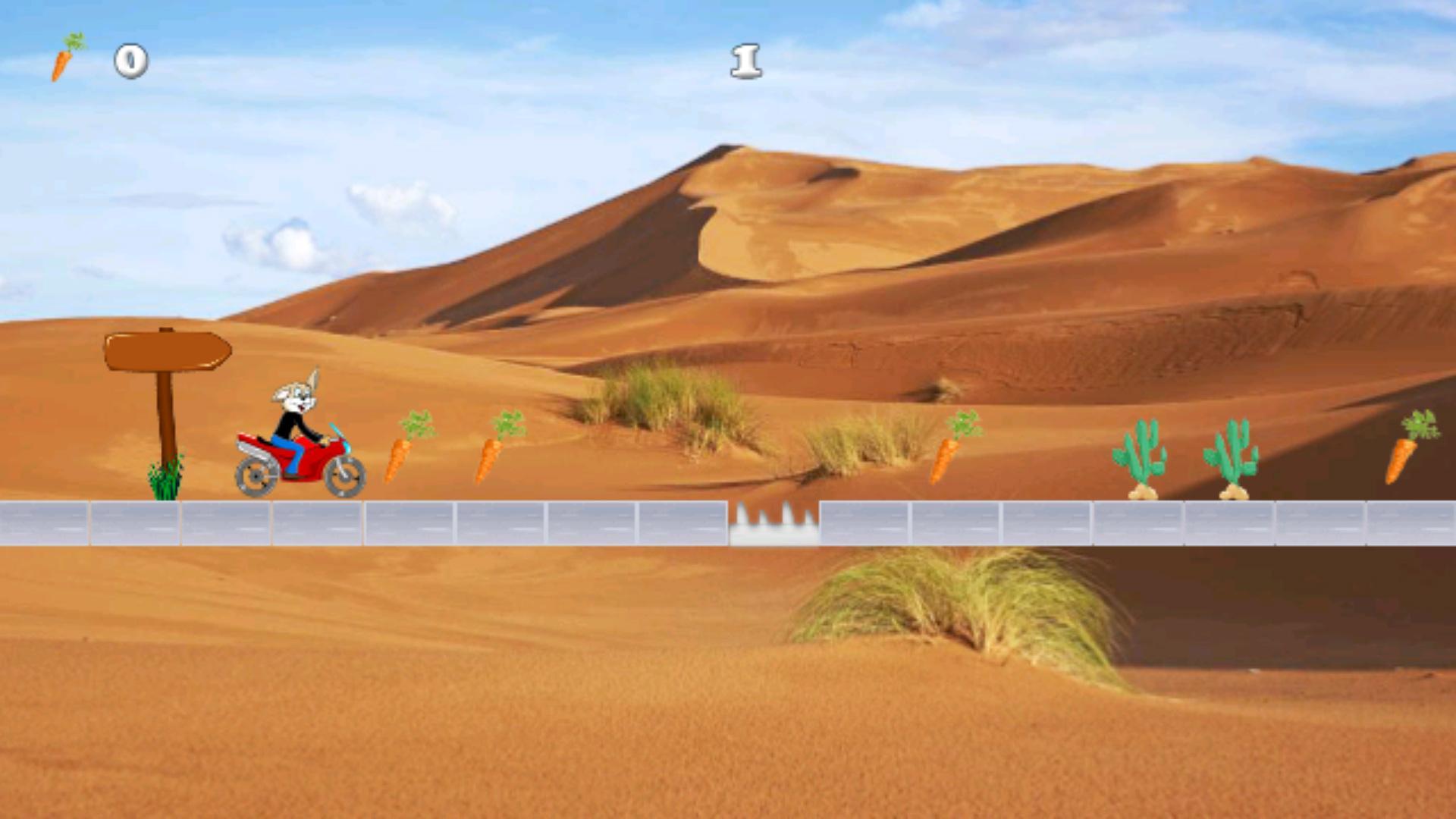World 3 : After completing more than 90 Level, now you are in final stage. be careful ! Rabbit driving bike and needs your help to avoid the rocks of desert sand dunes.