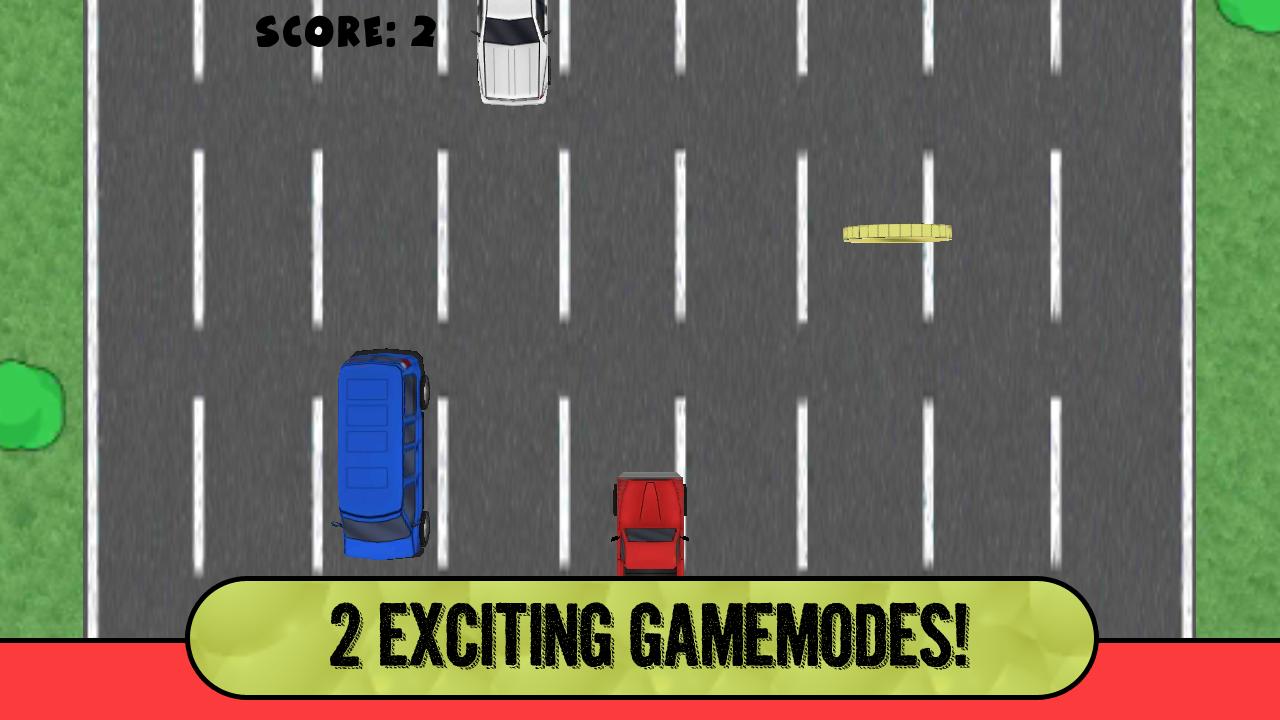 Carnage is a fast paced collection of car based mini-games. There are currently 2 single player game modes, 'Classic' and 'Motorway Mayhem'. The objective is to avoid crashing long enough to earn some coins.