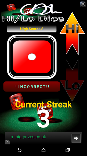 Build the longest streak possible, guessing if the next Dice is higher or lower