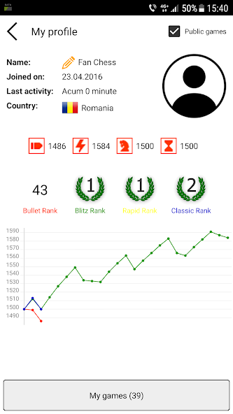 * Play - play chess with your friends or other chess players around the world or against a chess engine. Also, you can keep track of your progress by receiving a chess rating and compete to see your name as high as you can on the leaderboards.