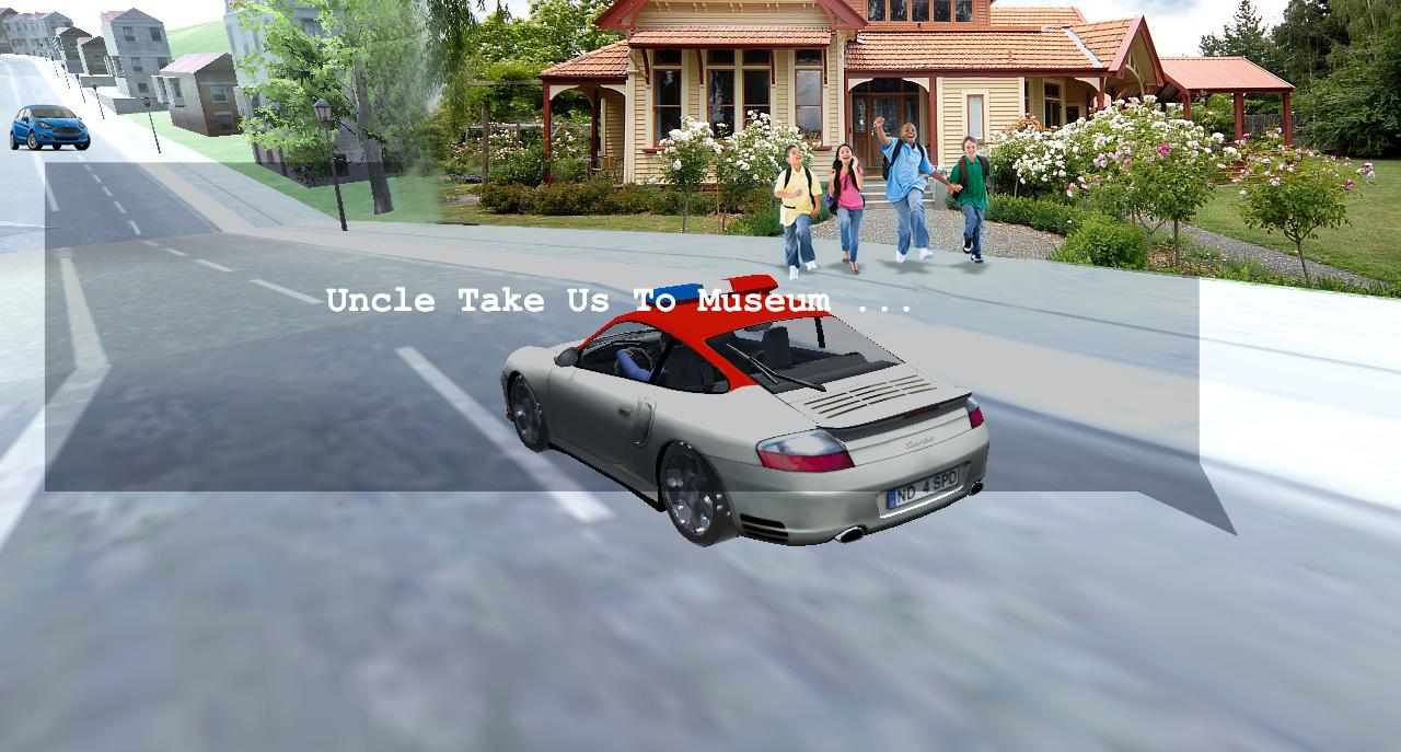 7) 3D Driver in car driving with passengers.