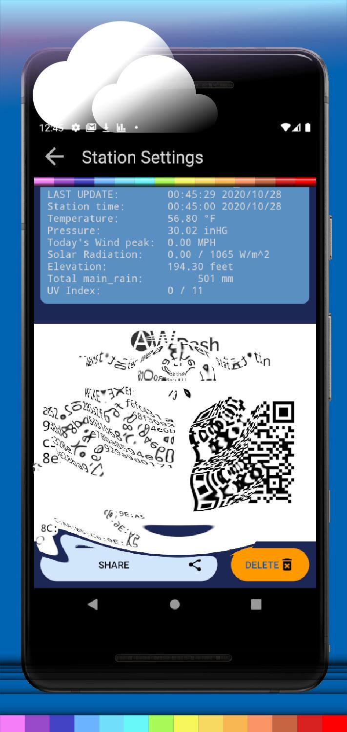 Der App stream live, in Echtzeit, Daten aus der Wetterstation über das Internet. Es zeigt Informationen wie Temperatur, Luftfeuchtigkeit, Niederschlag.