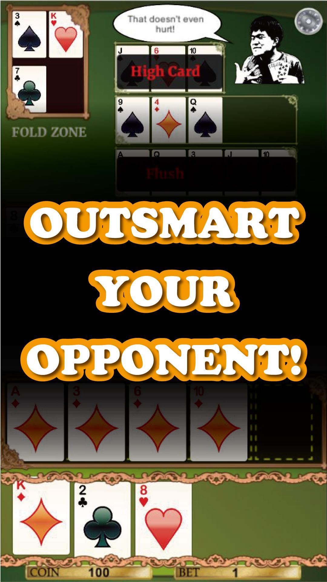 In dieser Art von Poker erstellen Sie Kombinationen von Poker -Händen, um Ihren Gegner zu schlagen, während Sie sehen können, was er durch Drehung und offener Gesichtsstil macht. Spielen Sie außerdem mit Ananasregeln, mit denen Sie Ihre Karten aus den angegebenen Karten auswählen können, und verwerfen Sie diejenigen, die Sie nicht verwenden möchten. WARNUNG: Strategie und Denkfähigkeiten sind erforderlich!