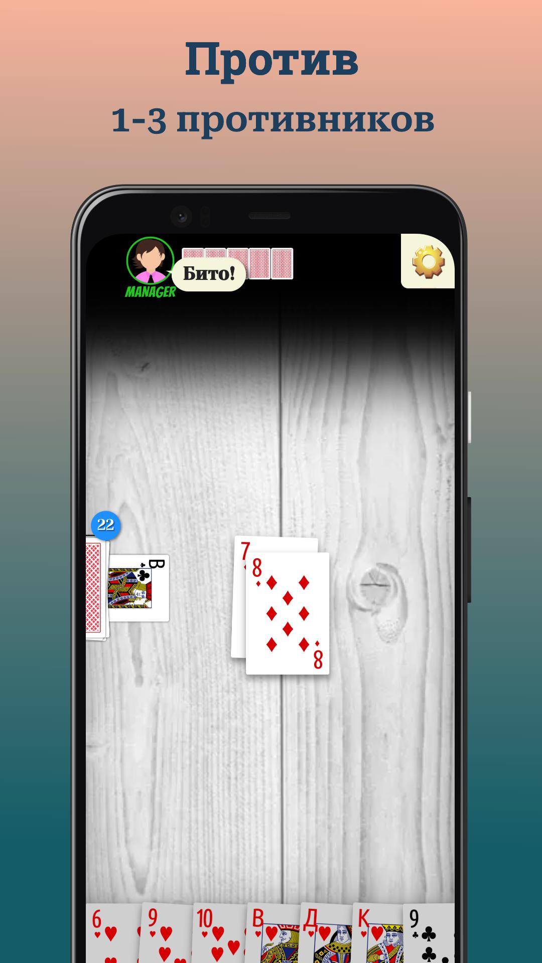 Laden Sie "Fool ohne Internet" herunter und tauchen Sie in die Atmosphäre eines echten Kartenspiels! ? Spielen Sie den Narren, trainieren Sie Ihre Logik und Aufmerksamkeit und genießen Sie jede Hand wie die guten alten Zeiten. ?