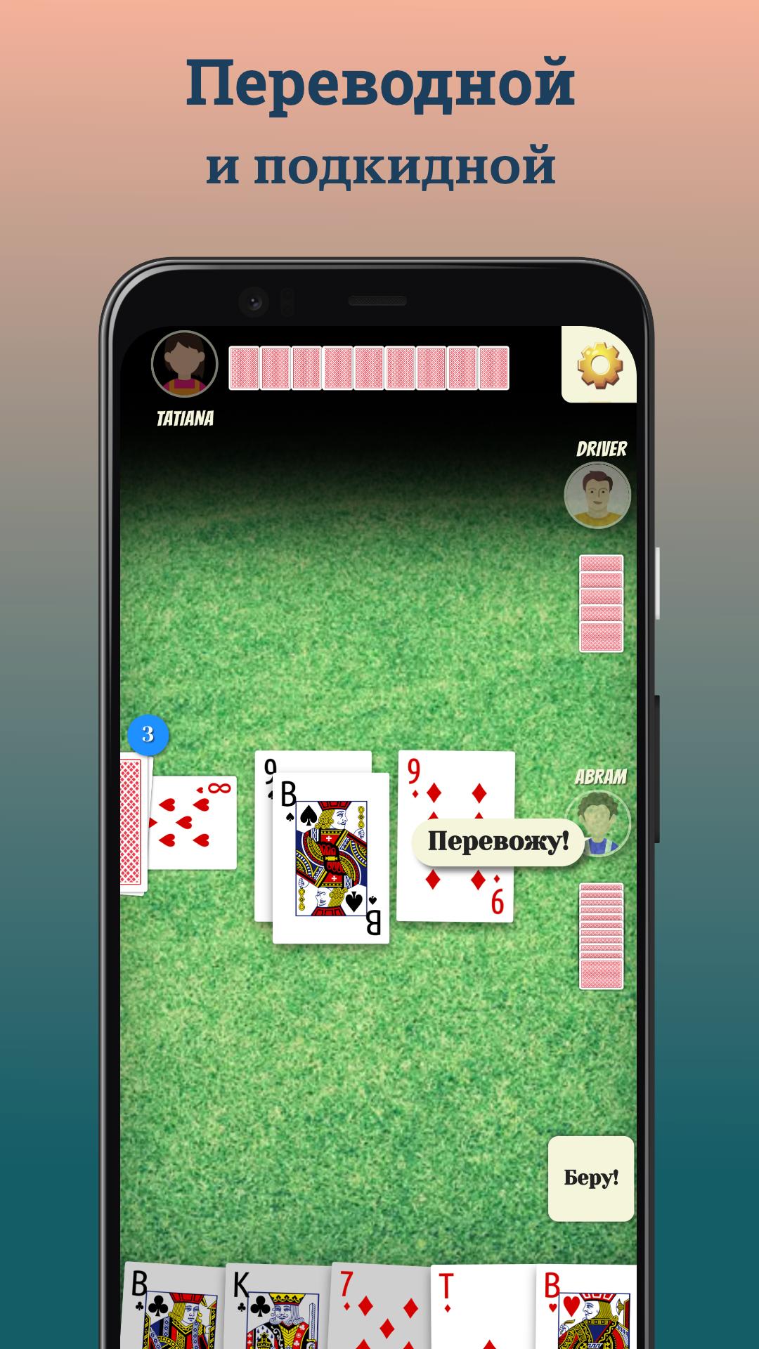 Wählen Sie zwischen Flip- und Übertragung von Narren und einer Reihe von Einstellungen (zuerst sind fünf Karten, Deck 36/52, werfen Sie nicht mehr als 6 usw.) - Spielen Sie so, wie Sie möchten.