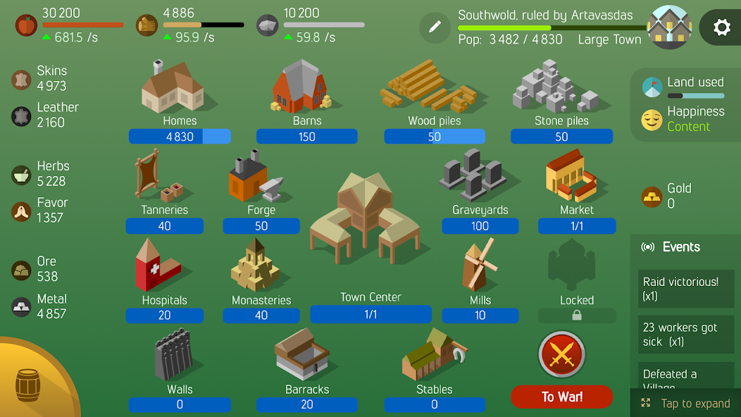 Nehmen Sie Ihre Siedlung und verwandeln Sie es in ein Dorf, eine Stadt, eine Stadt, eine Nation und letztendlich in ein Weltimperium.