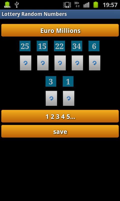 Sie können zwischen einer großen Auswahl vorhandener Lotterien wählen und Ihre Listen generierter Zahlen verwalten, indem Sie sie speichern (um sie beispielsweise das nächste Zeichnen wiederzuspielen;)).