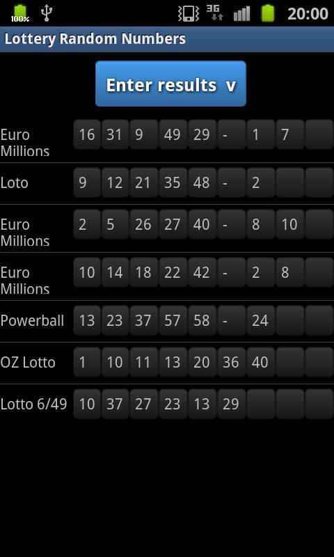 Supported lotteries : USA (Powerball, Mega Millions, Hot Lotto), Australia (OZ Lotto, Lotto, Powerball), Canada (Lotto 6/49, Lotto Max), China (Welfare Lottery, Mark Six), France (Euromillions, Loto), Germany (Lotto), Italy (SuperEnalotto), Japan (Loto 6), Russia (Gosloto), United Kingdom (Euro Millions, National Lottery Lotto, National Lottery Thunderball), Malaysia (Sports Toto Supreme).