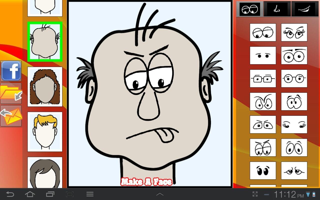2- Machen Sie ein Gesicht, indem Sie Augen, Nase und Mund vom rechten Bildlauf auswählen.