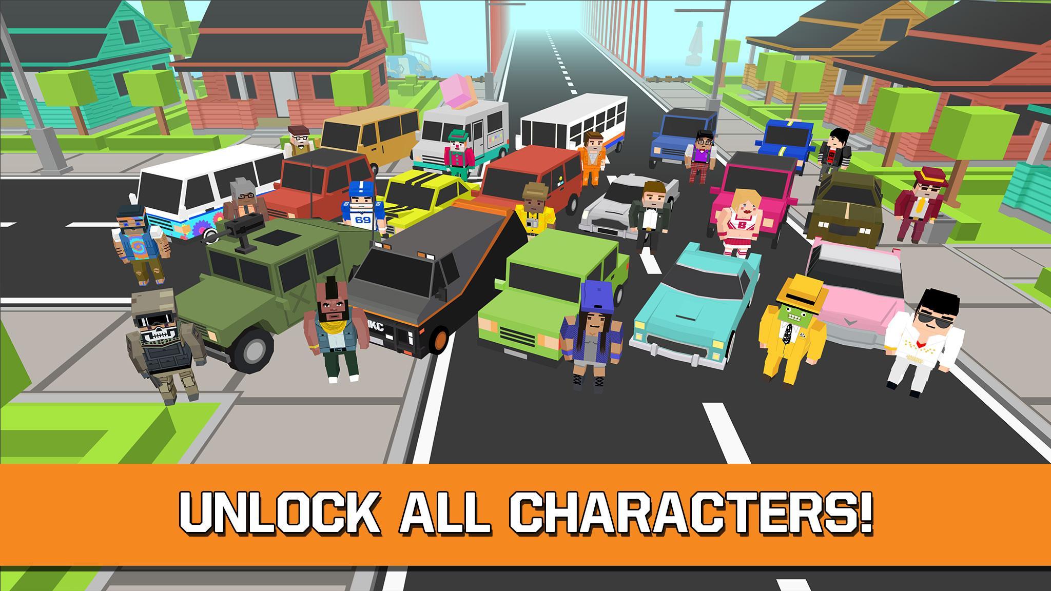 • Schalten Sie siebzehn einzigartige Charaktere und Fahrzeuge frei