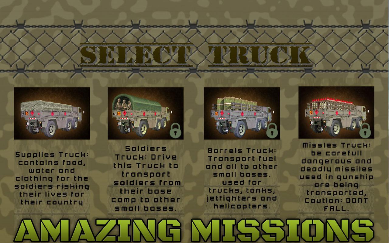 Das Drive Army Base Coach Truck Game gibt Ihnen ein Gefühl von allen in einem über alle Lastwagen und Armee -Busspiele. Wenn Sie ein Liebhaber von Frachtspielen, Frachttransportspielen und Armee -Frachtspielen sind, ist die Versorgung der Armee perfekt für Sie. Wenn Sie einen LKW -Lkw fahren, ist Ihre Pflicht, Lebensmittel, Wasser, Kleidung und andere Notwendigkeiten an Soldaten zu transportieren. Wenn Sie gerne in einen Schuh des Busfahrers einsteigen und gerne Fahrspiele und Busfahrspiele spielen, sollte Soldier Truck für Sie wünschenswert sein. Ihr Ziel ist es, Soldaten aus ihrem Hauptbasislager auszuwählen und sie in verschiedene Stützpunkte in einer Stadt fallen zu lassen. Wenn Sie jetzt über 2 Missionen abgeschlossen sind, ist es Ihre Pflicht, einen großen 4x4 -Lkw zum Transport von Öl zu fahren. Jetzt haben Sie die Chance, Öl zu liefern und ein Fahren mit Öltransportwagen zu simulieren. Transportölkonsum für andere Tanks, Düsenkämpfer und Hubschrauber. Drive Army Check Post -LKW und Transport Deadly Missile, die in Battlefield von Frontline -Löttern verwendet werden.