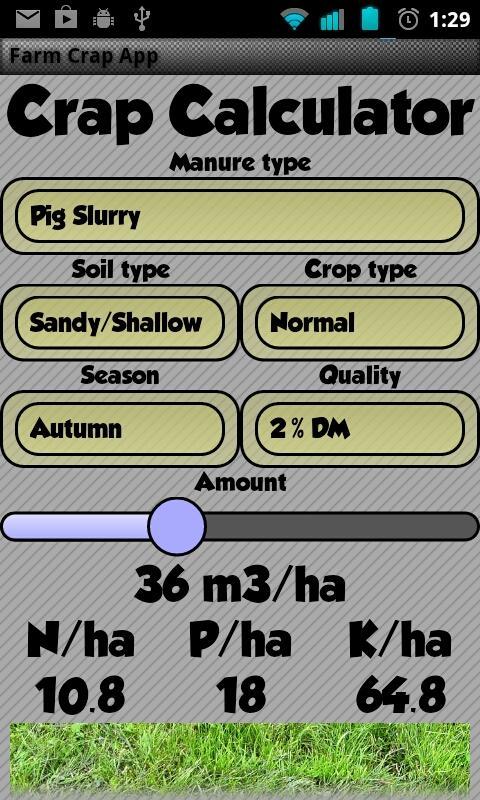 The Farm Crap App soll den Landwirten helfen, das Beste aus ihrem Gülle zu machen (Gülle, Fym und Geflügelstreu). Die App enthält 3 Komponenten; Der Taschenrechner, die Bildbibliothek (zu dem Sie Ihre eigenen Fotos hinzufügen können) und die Datensätze. Der Taschenrechner ermittelt die Menge an zugänglichen Schlüsselnährstoffen (N, P & K) innerhalb des Gülle mit unterschiedlichen Ausbreitungsraten, die Ihnen helfen, zu entscheiden, wie viel Sie sich ausbreiten möchten, um die Ernteanforderungen zu erfüllen, und auch, wie dies aussieht.