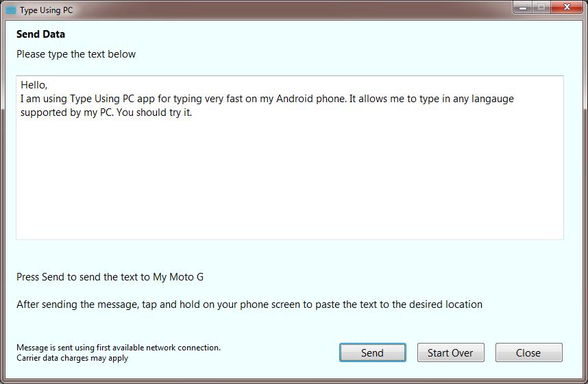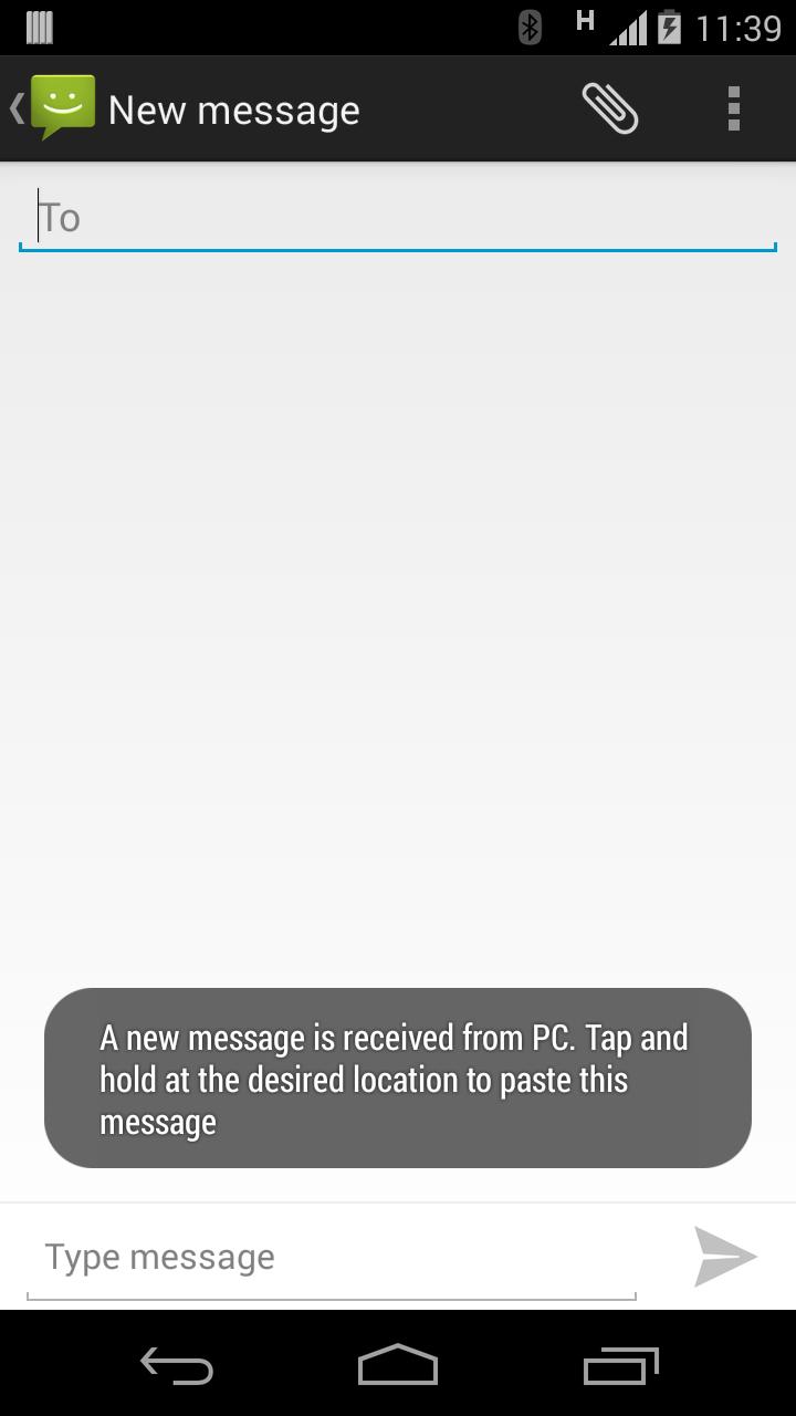 Um Ihr Android -Gerät auf Ihr Android -Gerät einzugeben, geben Sie einfach einen beliebigen Text Type Using PC -App auf Ihrem PC ein. Alles, was Sie in die PC -App eingeben, wird an die Zwischenablage Ihres Telefons gesendet. Dieser Text kann an jede App auf Ihrem Gerät wie E-Mail, Nachrichten usw. eingefügt werden.
