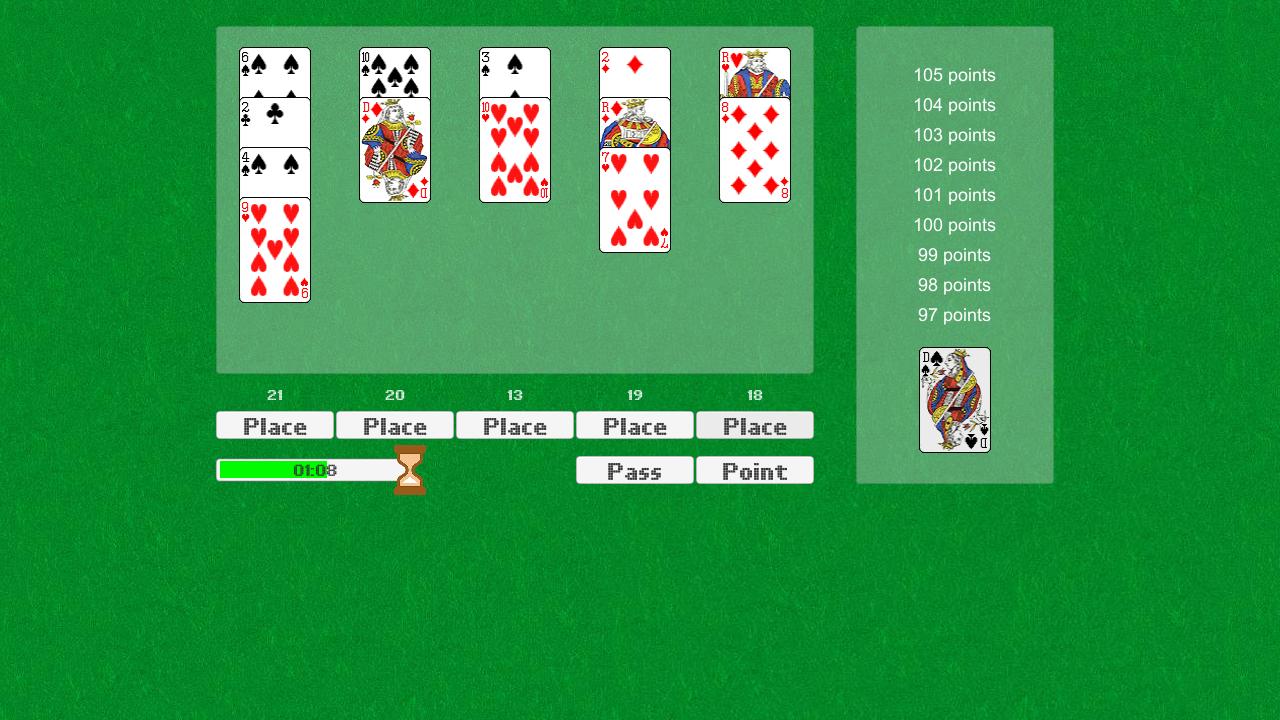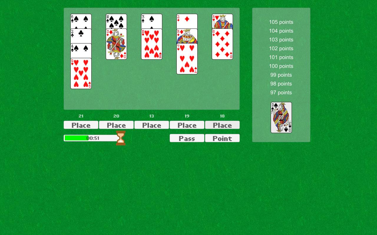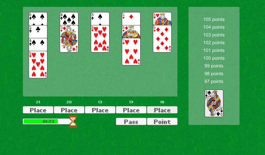 Kartenspiel, bei dem Sie 5*21 ausrichten müssen