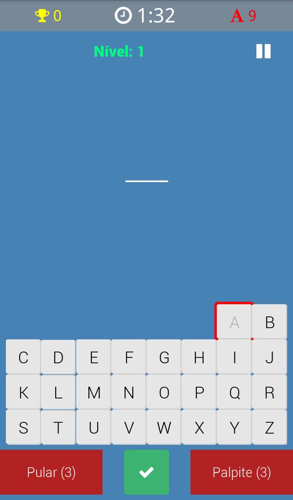 The game " Descubra a Palavra " is a fun hobby created for those who like to guess words. The goal is to find out what a hidden word is, more or less like in a gallows game. The player must touch the lyrics of the virtual keyboard one by one until he discovered the word.