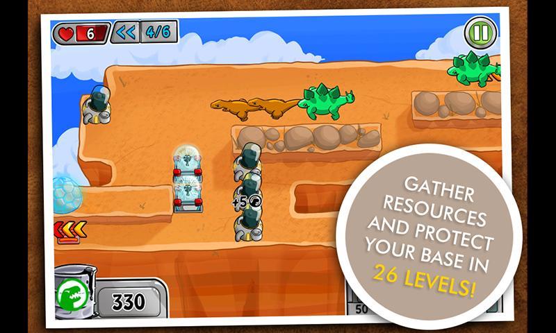 The distinct touch-based control of the arsenal is just one of Dino Zone's many innovative features. Players can reroute dinosaurs with barricades, place traps, make mazes, throw bombs and much more - there's over 20 different unlockable weapons and perk. That symbiosis between well balanced content and innovative interaction puts tactics and action in a whole new perspective for the genre. Blasting through 35 highly polished levels gets you face to face with dozens of different dinosaur species, each with its own unique behavior. For the more experienced player, trying to survive for as long as possible in one of the four survival arenas assures replay value.