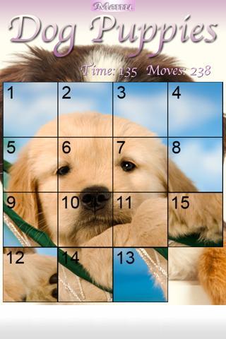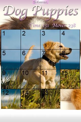 Dog Puppies is a cute and easy to play slider puzzle game with nice little Dog Puppies as theme. In a 16-tiles grid you need to re-arange the tiles back to a matching puppy picture. Numbers from 1-15 in the tiles will help you with assembling the picture!