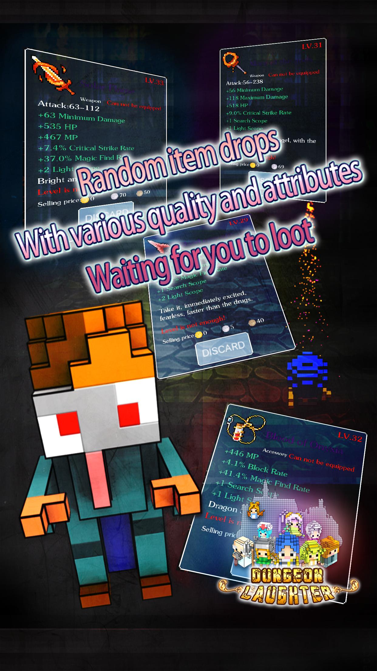 Whether you are a dungeon adventure game enthusiast, or you are a player who left footprints in a lot of classic dungeon games, you will find the memories and the new fun in our game, just like good old times.