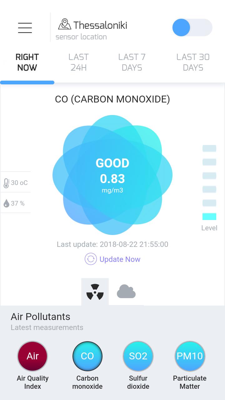Nota importante: La aplicación está disponible en escala piloto para todos los ciudadanos y visitantes de Thessaloniki de forma gratuita. Los datos de calidad del aire incluyen contaminantes del aire principales, como O3, NO2, SO2, CO y PM10 y la temperatura del aire y la humedad relativa. Los servicios adicionales son el cálculo en tiempo real del índice europeo de calidad del aire y la evaluación estacional del índice de calor durante el verano. Karteco no es responsable de la precisión o cualquier otra característica de los datos. La información de calidad del aire proporcionada sirve solo a fines de investigación. Dado que la estación de medición no se ha sometido a una revisión de garantía de calidad para determinar su precisión, los datos y los resultados presentados no pueden usarse para otras aplicaciones.