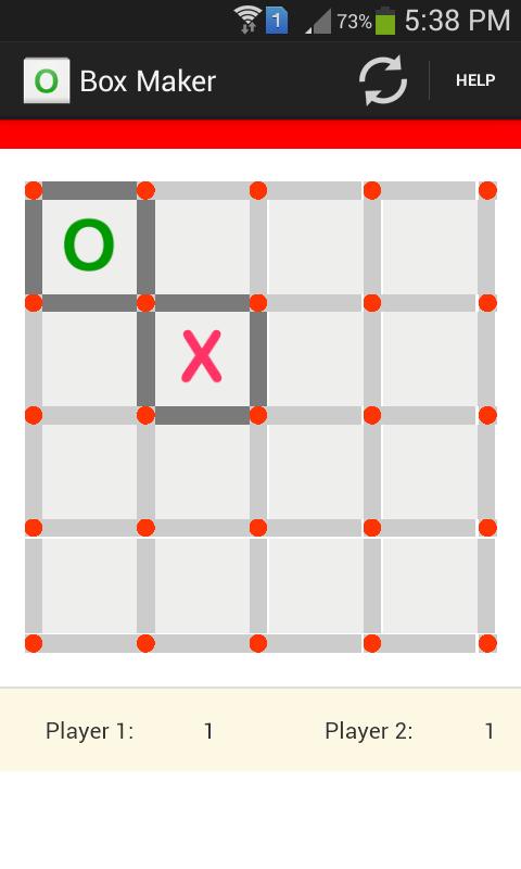 Un juego clásico de fabricación de caja que solíamos jugar durante la escuela o las universidades. Es un juego de dos jugadores jugado en el mismo dispositivo; El jugador que completa las cajas máximas al final ganará. Diviértete con tus amigos.