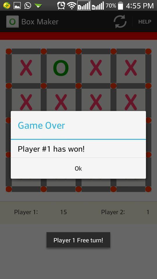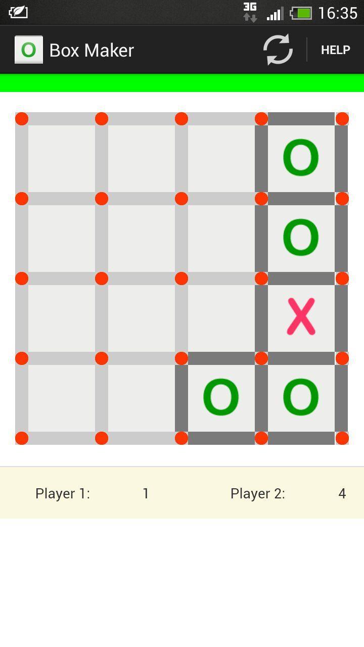 3. Juega alternativamente e intente completar las cajas o cuadrados máximos. Cuando completa una caja/cuadrado, el signo del jugador se muestra en él.