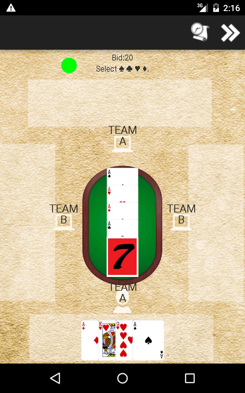 Si mientras se juega el jugador de la mano, no se juega una carta de suite. Puede elegir revelar el Trump. Al revelar que el jugador de Trump debe jugar la carta de Trump Suite. Si la carta de la suite actual no existe, el jugador puede jugar cualquier carta. En los trucos posteriores, el jugador puede elegir no jugar a Trump Suite y puede jugar una carta de cualquier suite.
