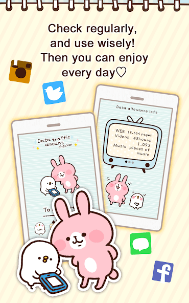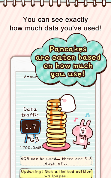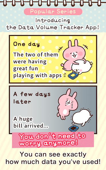 - Diviértete midiendo tu uso de datos con las lindas ilustraciones de los lindos personajes de Kanahei Pisuke y Usagi.