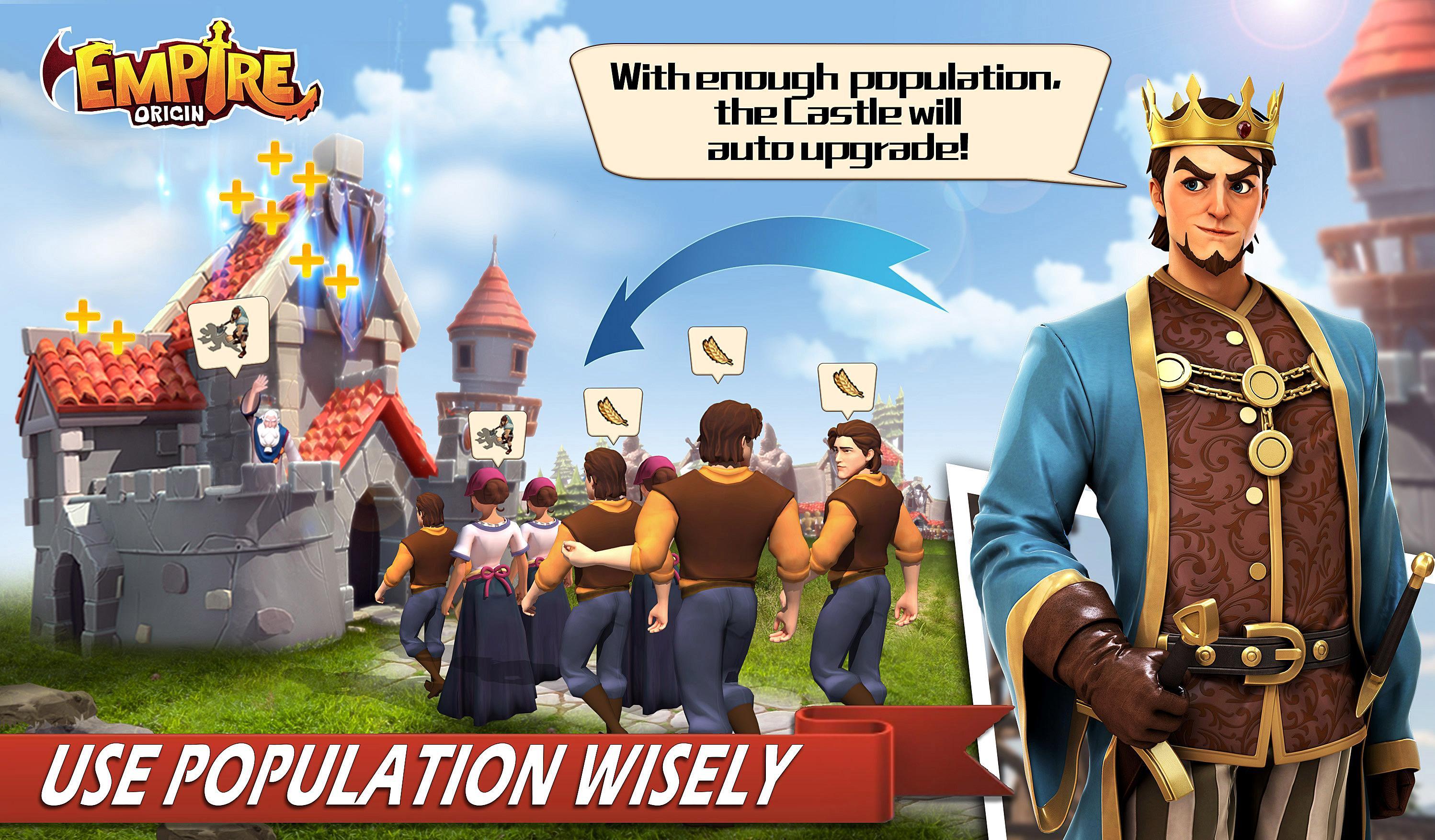 Desarrollo: no necesita reunir los recursos día y noche y esperar un momento interminable para que su ciudad se actualice. ¡Toda la actualización se realizará una vez que tenga suficiente población!