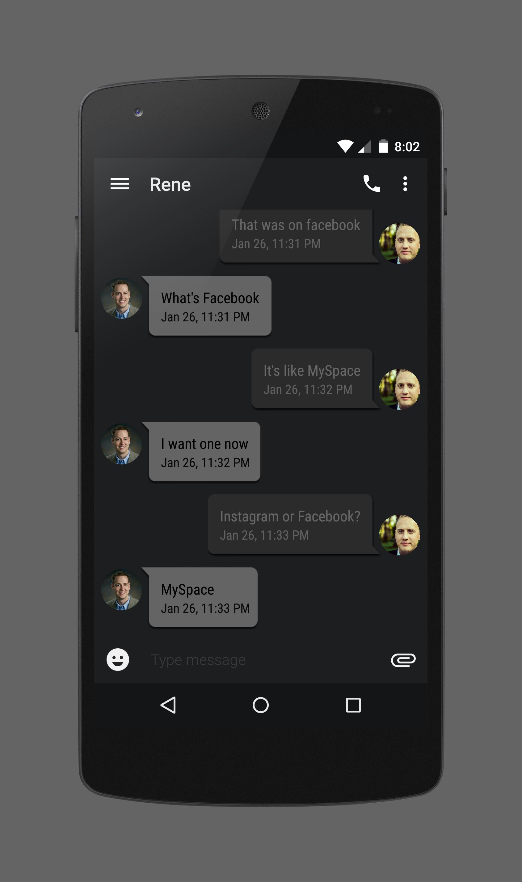 Este es un tema material oscuro para la aplicación de texto recientemente lanzada llamada Evolve SMS.