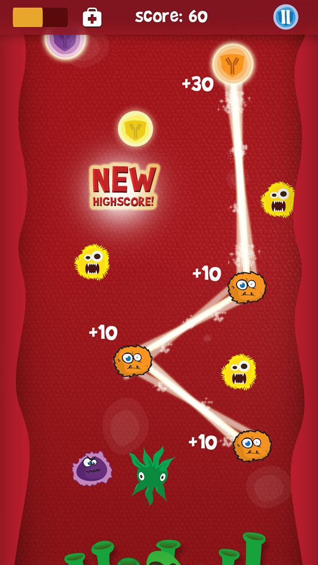 - Más combos, más puntos, eliminan múltiples virus al unirlos a uno de los mismos casos de anticuerpo de color