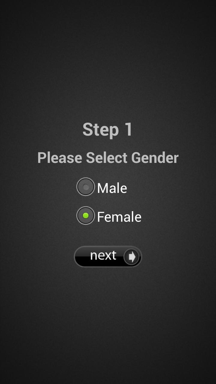 Paso 1: Seleccione su género (hombre/mujer) y toque el botón siguiente. Seleccione su género correctamente para obtener los resultados correctos.