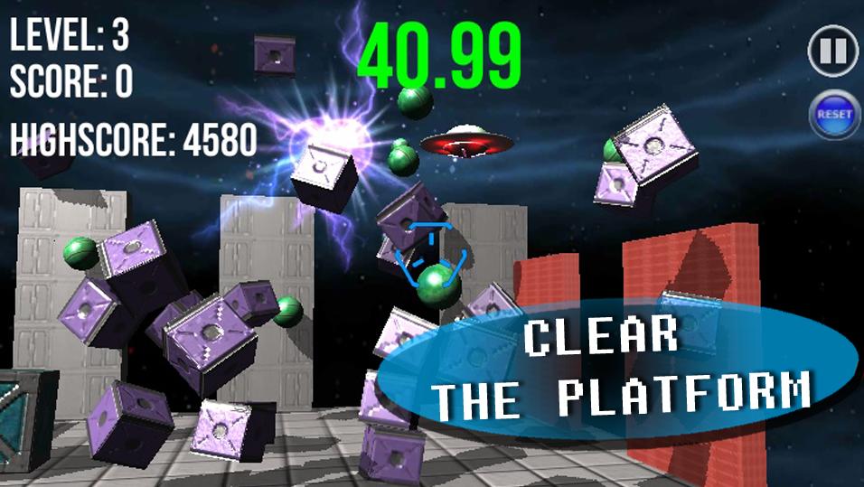 Derriba los ovnis y usa la gravedad para borrar la plataforma en este adictivo tirador físico.