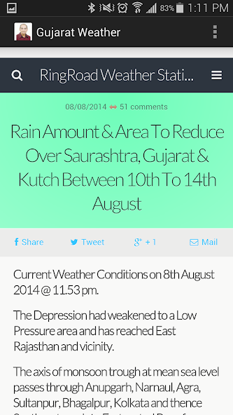 Presenta los últimos artículos de blog de Gujaratweather.com [Ringroad Weather Station] Publicado por el analista de clima Ashok M. Patel. El sitio web tiene más de 2,000,000 de visitas y tiene miles de seguidores en todo el mundo que buscan la información más reciente sobre el monzón del suroeste y cambian los patrones climáticos en todo el subcontinente indio.
