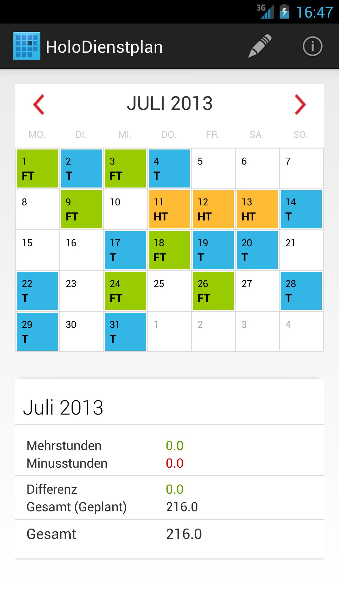 La aplicación calcula sus horas de trabajo mensuales planificadas.