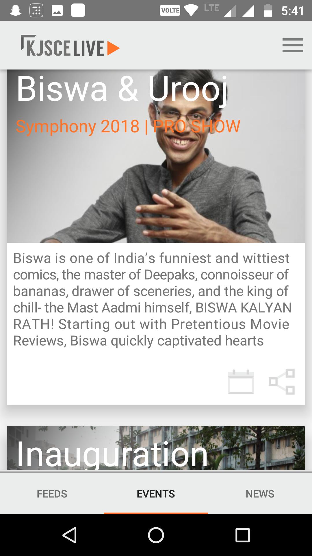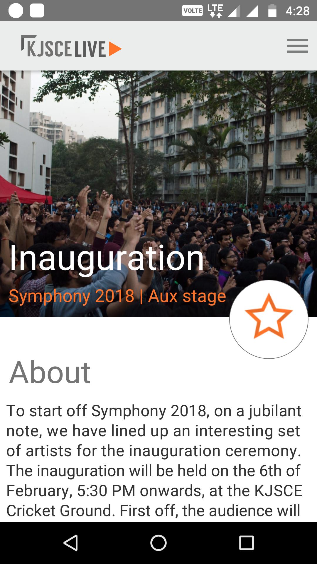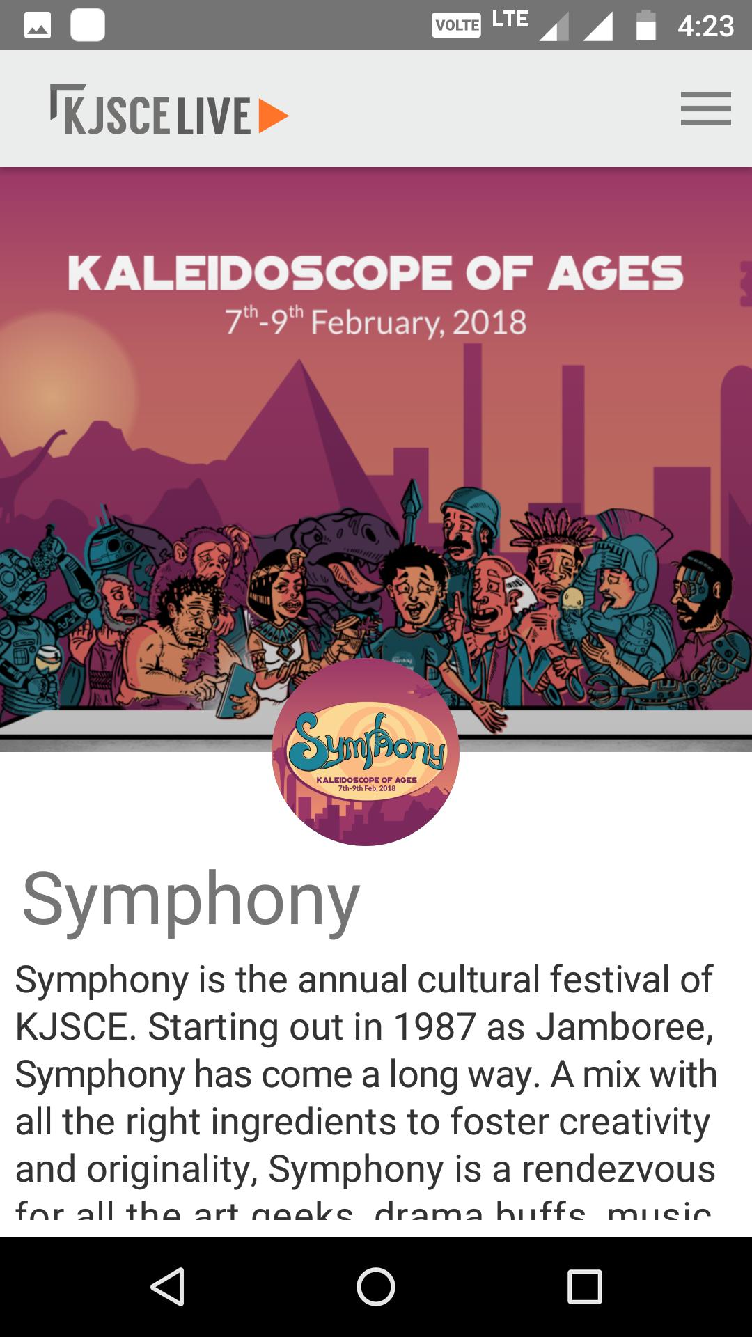 La aplicación KJSCE Live se conceptualizó teniendo en cuenta la necesidad de tener una fuente de información centralizada, así como un tablón de anuncios para todas las cosas relacionadas con la universidad. La información sobre todos los cuerpos y actividades universitarios se pone a disposición en la plataforma, así como noticias relevantes para los estudiantes.